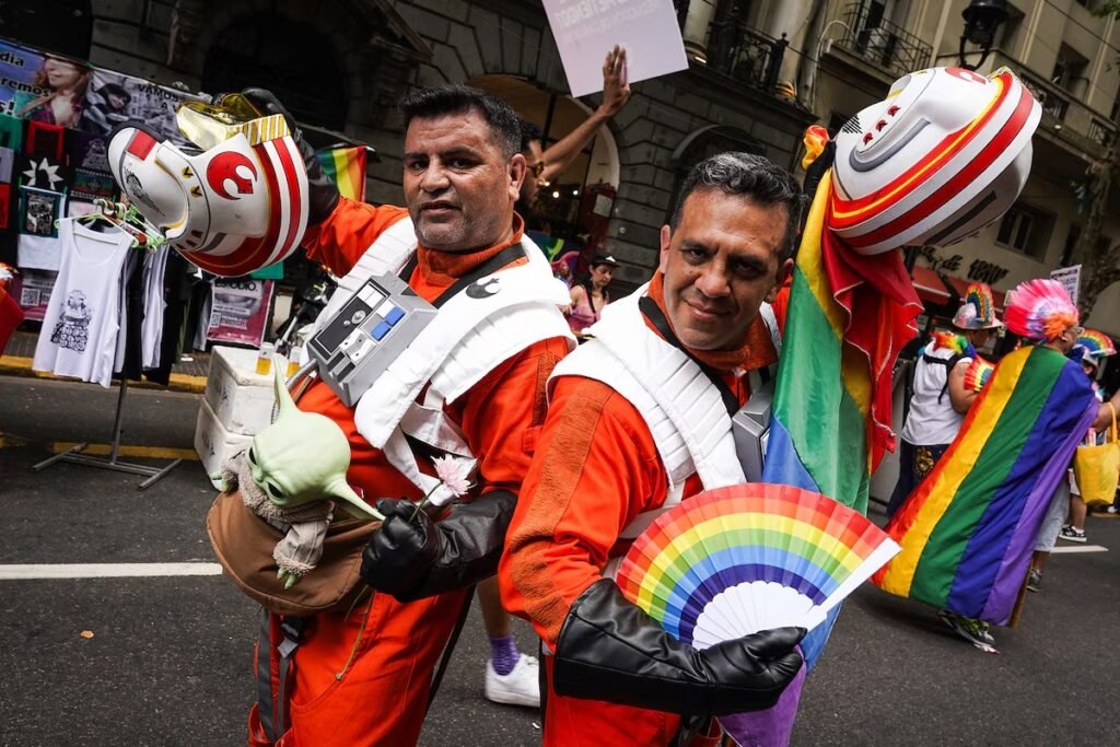 Cientos de miles de personas colmaron el eje Plaza de Mayo–Congreso en la 34ª Marcha del Orgullo LGBTQIA+ de Buenos Aires. Entre banderas, glitter y carteles artesanales, el pulso fue comunitario: familias, amistades y juventudes se movieron al ritmo de DJ sets y bandas a lo largo de la tarde-noche. El clima general fue de celebración y acompañamiento, con una presencia masiva que volvió a convertir el centro porteño en un gran corredor de diversidad. La consigna de esta edición se leyó en pancartas y escenarios, mientras los asistentes ocuparon calles y veredas con un mismo propósito: visibilizar, encontrarse y disfrutar de una jornada extensa e intensamente afectiva. La crónica de la multitud y el espíritu festivo quedó retratada por coberturas fotográficas y testimoniales que hablan de una edición especialmente concurrida y colorida.