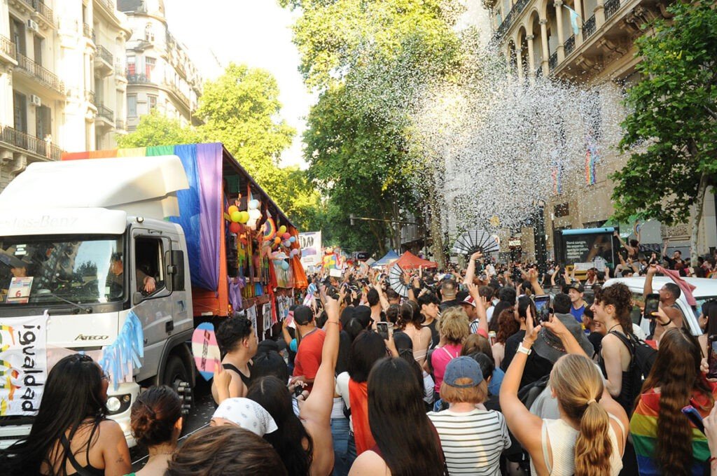 > “La 34° Marcha del Orgullo LGBTIQ+ volvió a tomar las calles de la ciudad de Buenos Aires… en un clima festivo.”