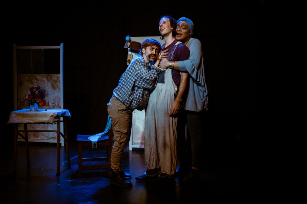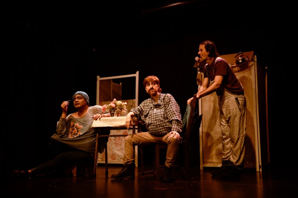 La integración de Luar Pepe. A lo largo del proceso hubo cambios, inicialmente ensayábamos sólo con Julián y Princi, y avanzamos bastante bien. Pero en el momento en que Luar se integró al equipo, con una comprensión profunda y sensible tanto de la trama como del lenguaje escénico, el engranaje completo empezó a adquirir mayor sentido, no porque antes no estuviera, sino que, porque cada pieza es esencial y aporta. Y sin duda, Luar es un aporte valiosísimo.